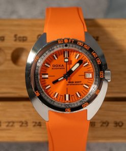 Despite its smaller size, the SUB 200T retains the brand’s DNA while modernizing its style. Made from premium materials, the DOXA SUB200T features a unidirectional rotating bezel, date display, screw-down crown, and impressive water resistance of 200 meters. Enhanced legibility in low-light conditions is ensured with Super-LumiNova luminescent coating.