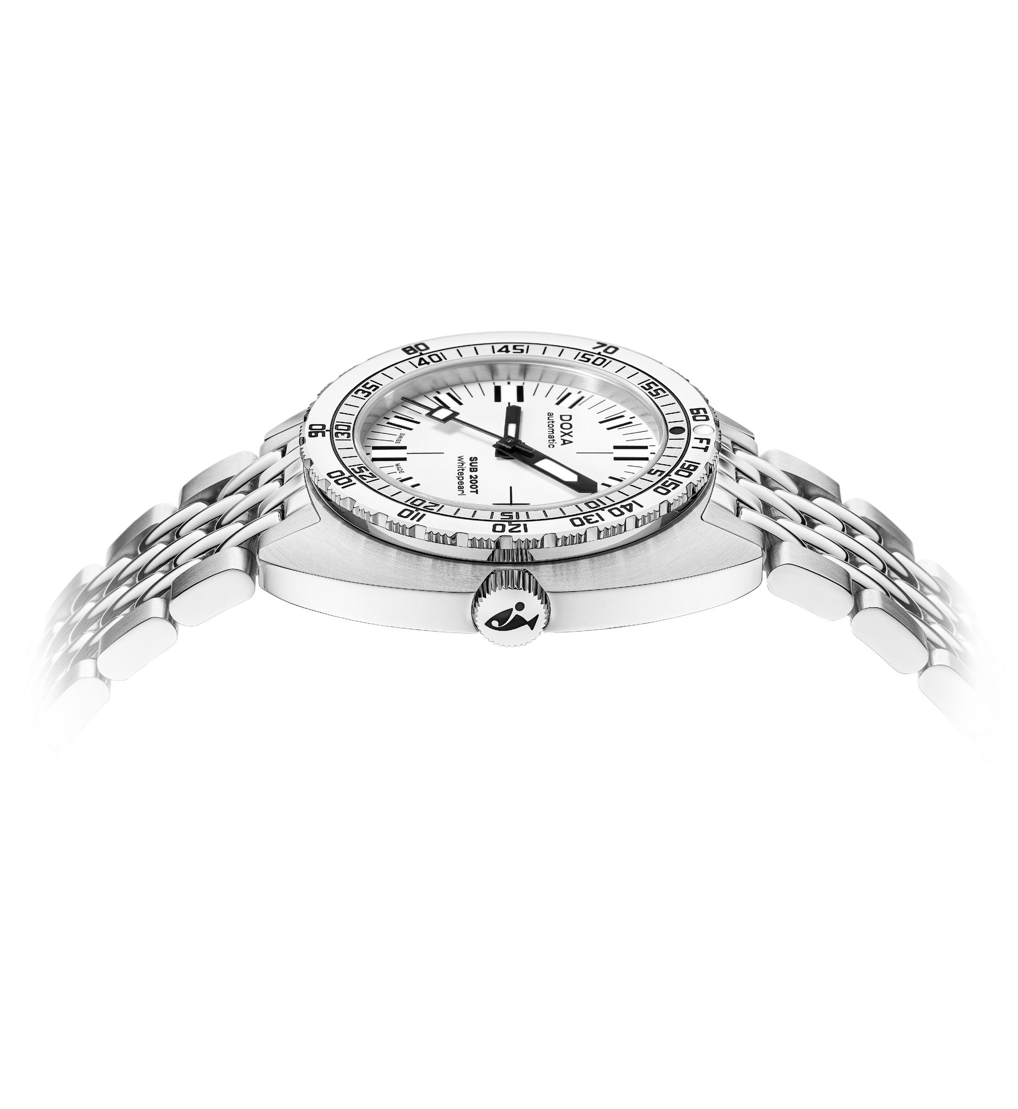 Despite its smaller size, the SUB 200T retains the brand’s DNA while modernizing its style. Made from premium materials, the DOXA SUB200T features a unidirectional rotating bezel, date display, screw-down crown, and impressive water resistance of 200 meters. Enhanced legibility in low-light conditions is ensured with Super-LumiNova luminescent coating.