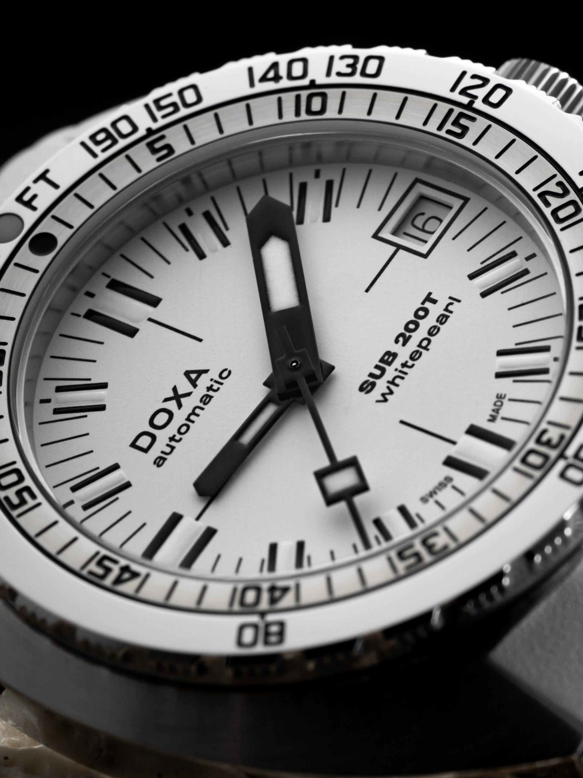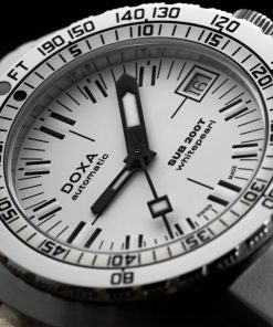Despite its smaller size, the SUB 200T retains the brand’s DNA while modernizing its style. Made from premium materials, the DOXA SUB200T features a unidirectional rotating bezel, date display, screw-down crown, and impressive water resistance of 200 meters. Enhanced legibility in low-light conditions is ensured with Super-LumiNova luminescent coating.