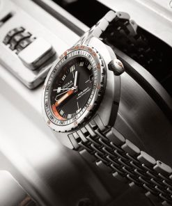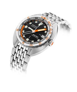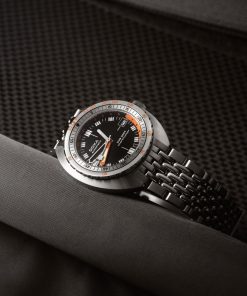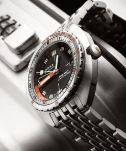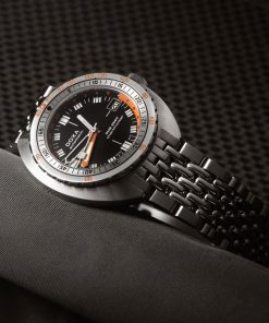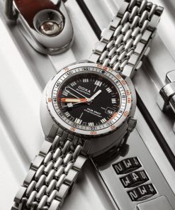 Echoing the spirit of the SUB 750T GMT from 2006, this latest evolution honors DOXA’s rich history with an added layer of technical sophistication. It’s available in nine signature colorways—from the iconic Professional orange to the sleek black Sharkhunter and the new vintage-style gradient dial—a first for DOXA, featured in the special Sharkhunter Vintage edition. The watch is available on a comfortable FKM rubber strap or the brand’s hallmark “beads of rice” stainless steel bracelet, both equipped with a diver’s extension.