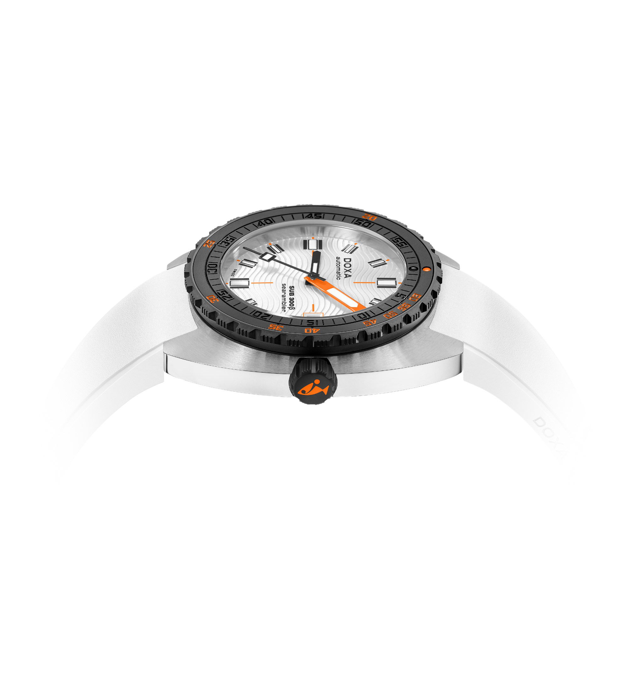This model offers two strap options: an FKM rubber strap or a stainless steel “rice grain” bracelet upon request. Both come with a deployant clasp featuring a wetsuit extension and the “DOXA Fish” symbol. With a water resistance of 30 ATM (approximately 300 meters), anti-reflective scratch-resistant sapphire crystal, and a Swiss automatic movement offering a 38-hour power reserve, the SUB 300β is engineered for safe underwater exploration. It captures the essence of modern sport-chic style, suitable for both diving and city life.