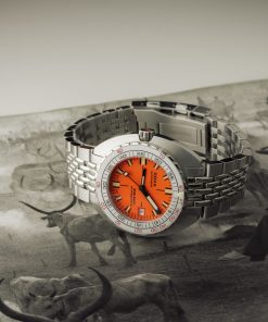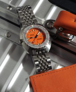 The watch maintains DOXA’s signature vibrant orange dial, robust 316L stainless steel construction, and impressive 1,200-meter water resistance. Powered by a Swiss automatic movement, the Aristera also offers both a stainless steel bracelet and a NATO-style strap.