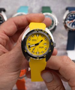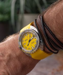 The new SUB 750T carries forward all the elements that made the original a tool of choice: a unidirectional rotating bezel, high-contrast hands, and a dial built for legibility. Every reference features Super-LumiNova® across the indexes, hands, and bezel, ensuring visibility in any environment. At launch, the watch is available in sixteen variations , spanning DOXA’s eight signature colorways , each paired with either the iconic “beads of rice” bracelet or a matching rubber strap. This range offers divers and enthusiasts alike a choice between classic steel presence and a sportier, lightweight feel.