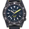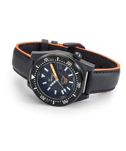 Despite its modern shell, the T-183 stays true to Squale’s diving roots. It’s rated to 600 metres of water resistance, with a helium escape valve and screw-down crown, making it a serious tool for underwater use. The dial is clean and legible, with bold markers and hands filled with Super-LumiNova for visibility in the dark. Available in blue, yellow or red accents, the coloured details add energy without going over the top. Paired with a matching rubber strap, it’s ready for action.