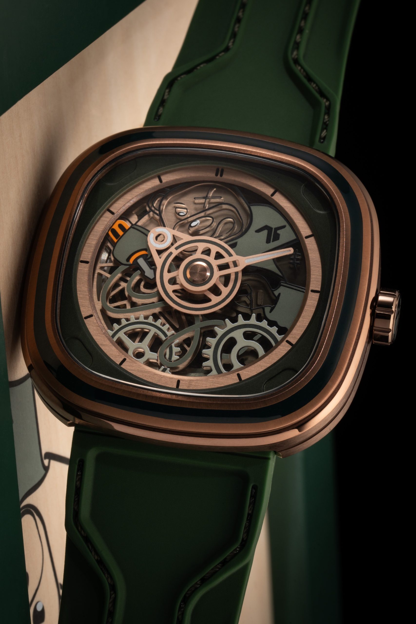 The T2/07 was created in collaboration with Hungarian artist Kata Kerekes, renowned for her detailed and playful graphics. She previously worked with SEVENFRIDAY on their Tiger NFTs and the M2/04 “Whisky” and T-Beach Club packaging. Her skill in visual storytelling perfectly captures Riley’s whimsical adventure.