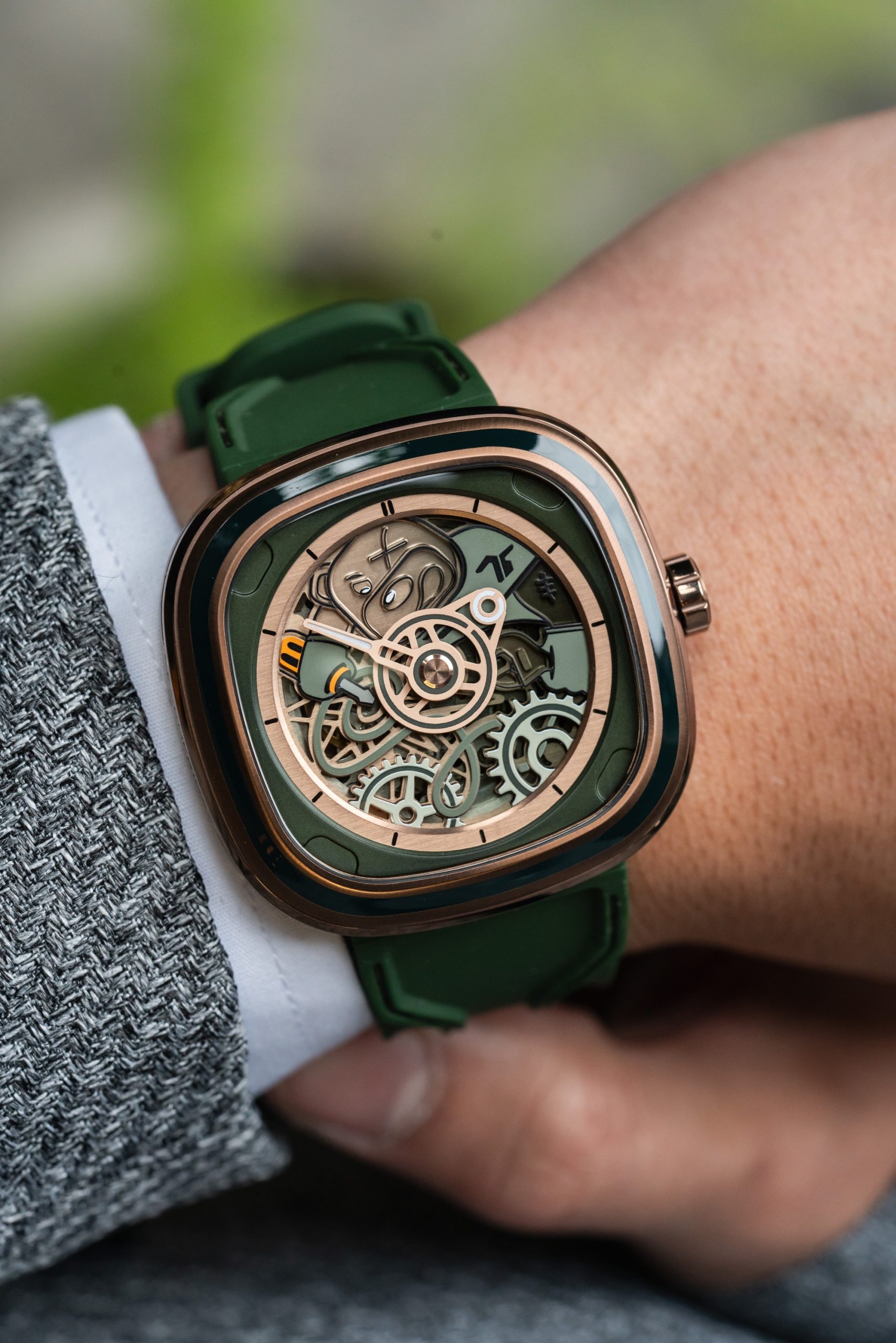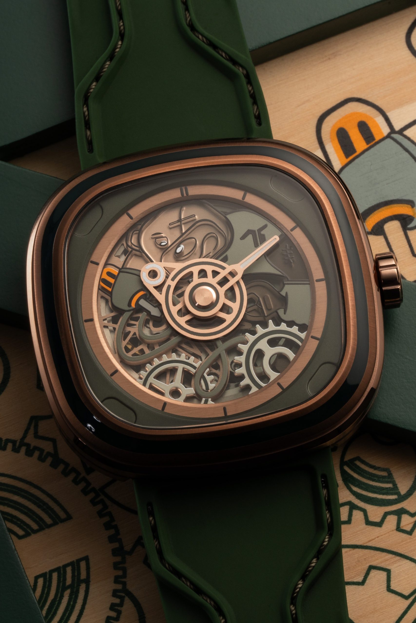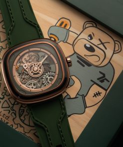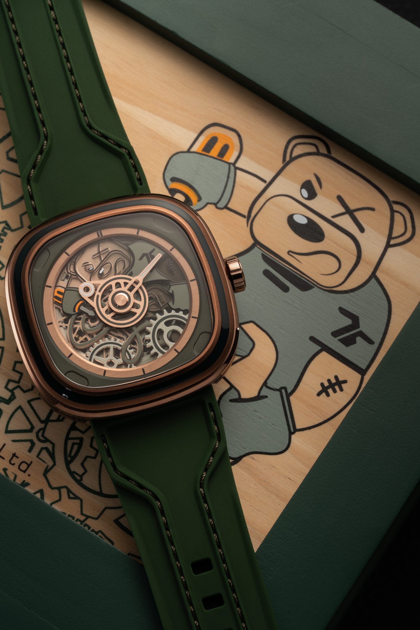 SEVENFRIDAY is known not only for its distinctive design and straightforward approach but also for Riley, their mascot teddy bear with an attitude. Riley attempted to design the latest T-series model but found watchmaking challenging. Despite his playful effort, which led to a chaotic yet charming design, the result is the unique T2/07 “T-Riley” model.