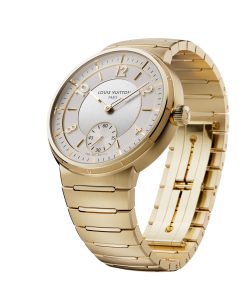 What defines a Tambour watch? It is characterized by a circular case featuring curved sides, prominently engraved with the letters “LOUIS VUITTON” at the 12 o’clock position. It possesses a specific volume and an almost architectural approach to its dimensions and proportions. These attributes, among others, are meticulously maintained and enhanced in the latest iteration of the Tambour timepiece.
