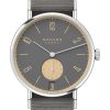 At the heart of the Tangente 38 date beats the hand-wound caliber DUW 4101, made in Glashütte and fitted with NOMOS’s proprietary swing system. Notably, NOMOS’s innovative date mechanism, seamlessly integrated into the movement, ensures a strikingly large date window positioned at the dial’s periphery—an unmistakable hallmark of the brand.
