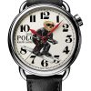 Indulge in the detail of the Polo Bear Martini Tartan, where tradition meets sophistication. Wearing a flawless tartan tuxedo paired with embroidered velvet slippers, the bear gracefully holds a martini glass, embodying the spirit of celebration. Choose between the classic allure of a stainless-steel case or indulge in the limited edition luxury of 18K rose gold. The 3D-printed bear elegantly graces the dial, making a bold statement against a pristine white lacquered background, complemented by striking black Arabic numbers and shiny black hands. Housed in a 42-mm case, this Swiss-crafted timepiece is powered by an RL200 caliber mechanical self-winding movement, meticulously hand-finished with vertical Côtes de Genève stripes and delicate circular graining, known as perlage.