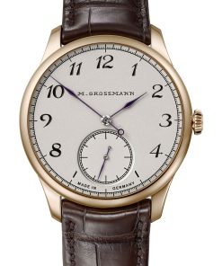 Embrace the elegance and precision of traditional craftsmanship with the new TEFNUT silver-plated by friction from Moritz Grossmann. Every aspect of this watch speaks volumes about its meticulous design and exceptional quality. The dial, a captivating canvas of craftsmanship, features a hand-silver-plated surface created using a refined 19th-century technique. This meticulous process imparts a velvety, matte structure to the dial, playing gracefully with light and shadow. Enhanced with contrasting black elements such as numerals, minute scale, and a historic logo, the dial showcases a perfect balance of tradition and elegance.