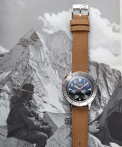 Albishorn continues its journey through the annals of horology with the Thundergraph, a chronograph designed as if it were the ultimate tool watch for the Swiss 1952 Mount Everest expedition. This “Imaginary Vintage®” timepiece fills a hypothetical gap in history, blending mid-century design with modern craftsmanship. The concept? A rugged yet elegant alpine chronograph, built to withstand extreme cold, altitude, and the unforgiving elements of the Himalayas.