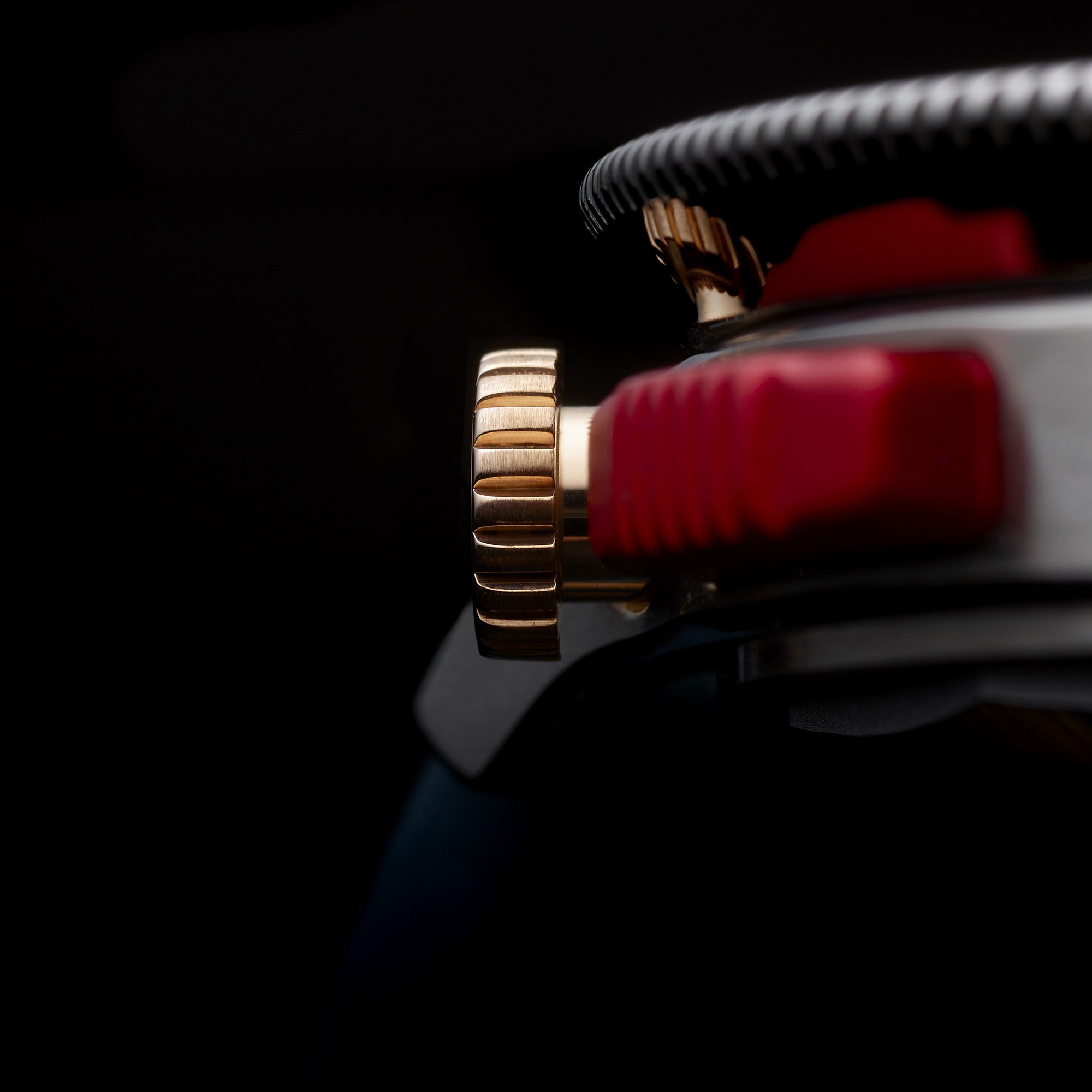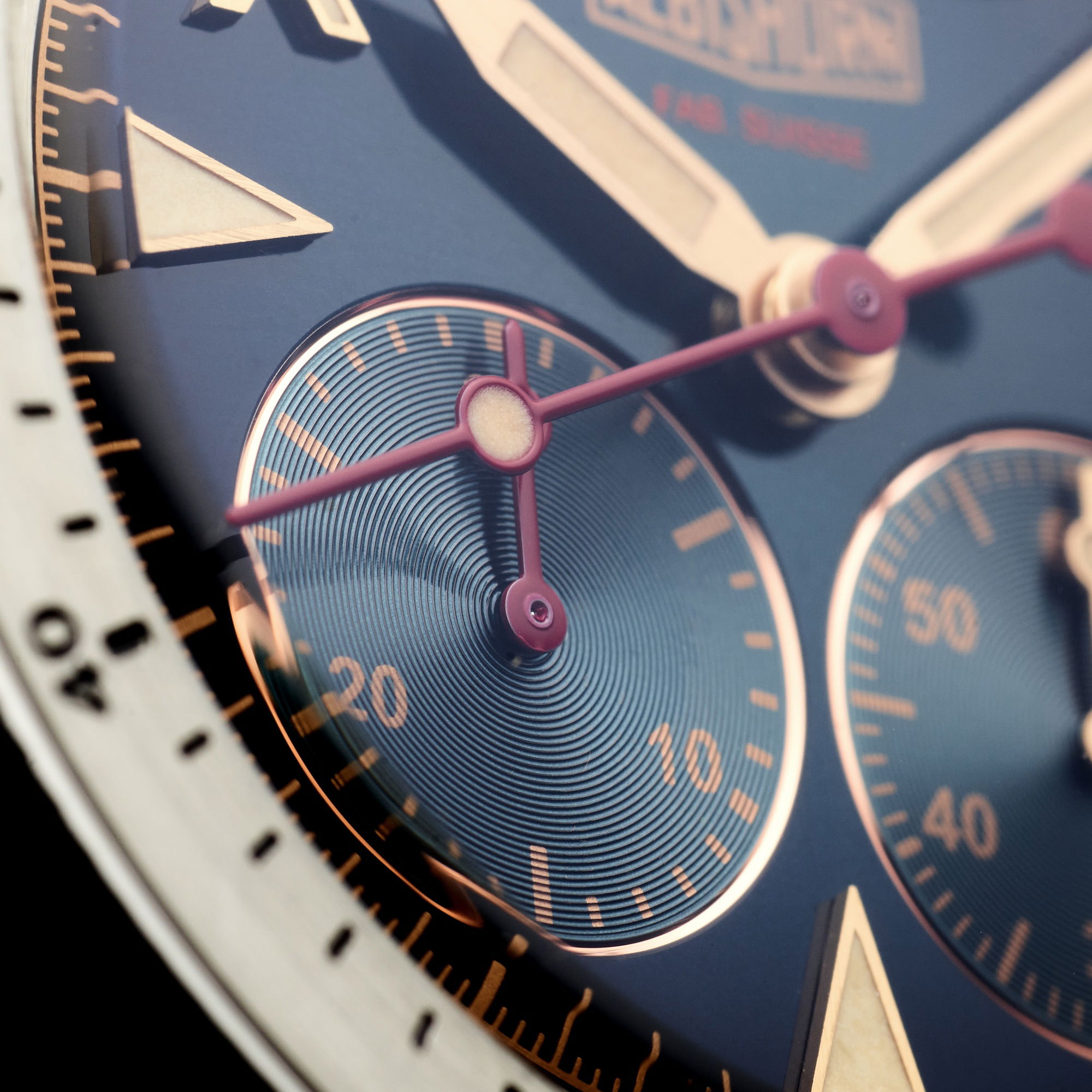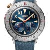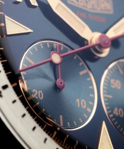 The Thundergraph’s dial is a masterclass in readability and vintage-inspired design. Featuring the “California ghost” dial, it maintains the iconic split layout but omits Arabic numerals in favor of two strategically placed subdials. Luminescent hands, oversized Roman numerals, and triangular indexes ensure visibility in low-light conditions, while the oversized conical bezel—designed for easy grip with gloves—adds both form and function. The crown at 10:30 and monopusher at 9:30 reflect thoughtful ergonomics, allowing for seamless operation even in harsh conditions.