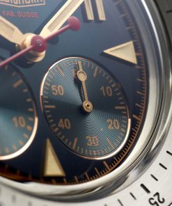 Under the hood, the Thundergraph houses a proprietary hand-wound chronograph movement, developed in La Chaux-de-Fonds and certified by COSC for superior accuracy. With an ultra-thin 5.70 mm movement height and an impressive 65-hour power reserve, it recalls the golden age of Swiss chronographs while delivering modern precision. The stainless steel case, optional bronze crown, and engraved case back (featuring a Swiss cross and rope motif) reinforce its alpinist heritage.