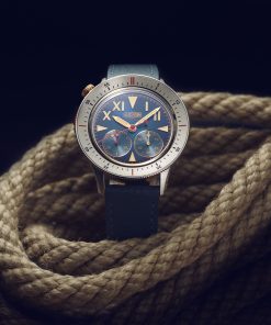 Under the hood, the Thundergraph houses a proprietary hand-wound chronograph movement, developed in La Chaux-de-Fonds and certified by COSC for superior accuracy. With an ultra-thin 5.70 mm movement height and an impressive 65-hour power reserve, it recalls the golden age of Swiss chronographs while delivering modern precision. The stainless steel case, optional bronze crown, and engraved case back (featuring a Swiss cross and rope motif) reinforce its alpinist heritage.