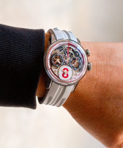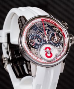 The White Fuji is built for those who appreciate precision and storytelling. Every press of the monopusher triggers a cascade of mechanical action, marking your moments with race-level accuracy. This watch isn’t merely inspired by speed, it is engineered for it. Your number, your race, your legacy: the White Fuji is a timepiece for drivers of life who live by performance and celebrate heritage with every second.