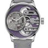 The Tribute 1 Fumé Slate is encased in a 38 mm steel case, showcasing an innovative design with an asymmetric dial and crown placed at 2 o’clock. The Tribute 1 Fumé Slate Edition features an impressive 100-hour power reserve, a hallmark of Armin Strom’s technical excellence. The final touch is a grey Alcantara calf leather strap, which not only adds a luxurious feel but also provides a comfortable fit.