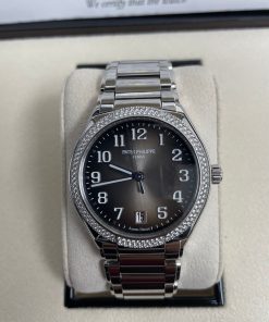 Patek Philippe has launched a brand new self-winding mechanical ladies’ watch, designed to set the pace of life in style for the modern, active woman. A new embodiment of feminine elegance, the Twenty~4 Automatic is the first model in the collection to feature a round case. The steel version with diamond-set bezel is available with a gray sunburst dial with black gradation. The beating heart of the timepiece is the caliber 324 S C self-winding movement, which is visible through the sapphire-crystal case back, displaying hours, minutes and sweep seconds, and the date in a small aperture at 6 o’clock.