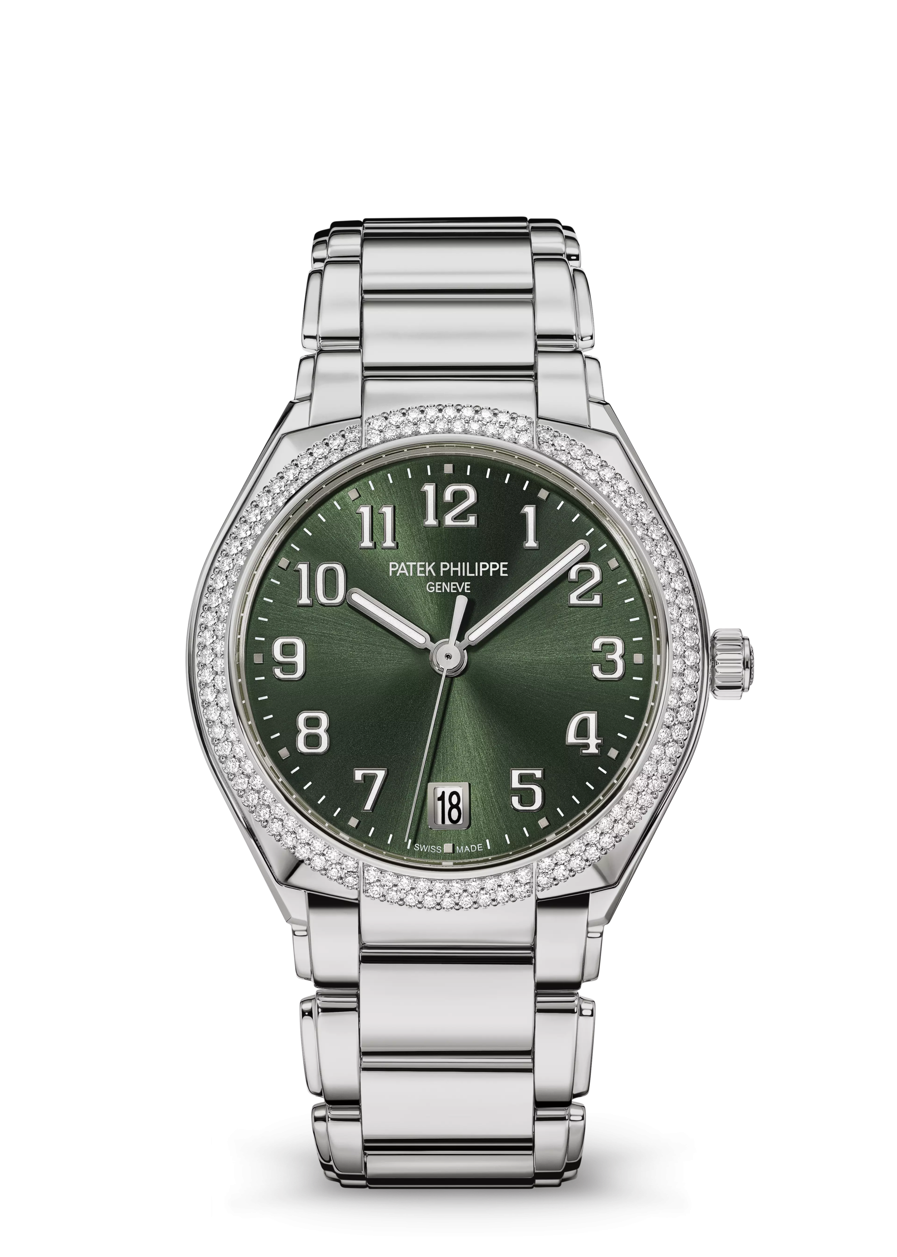 The olive green sunburst dial adds a touch of refinement and originality to this steel Twenty~4 Automatic designed to share every minute of an active life. The entirely hand-polished bracelet is equipped with a patented fold-over clasp secured by four independent catches.