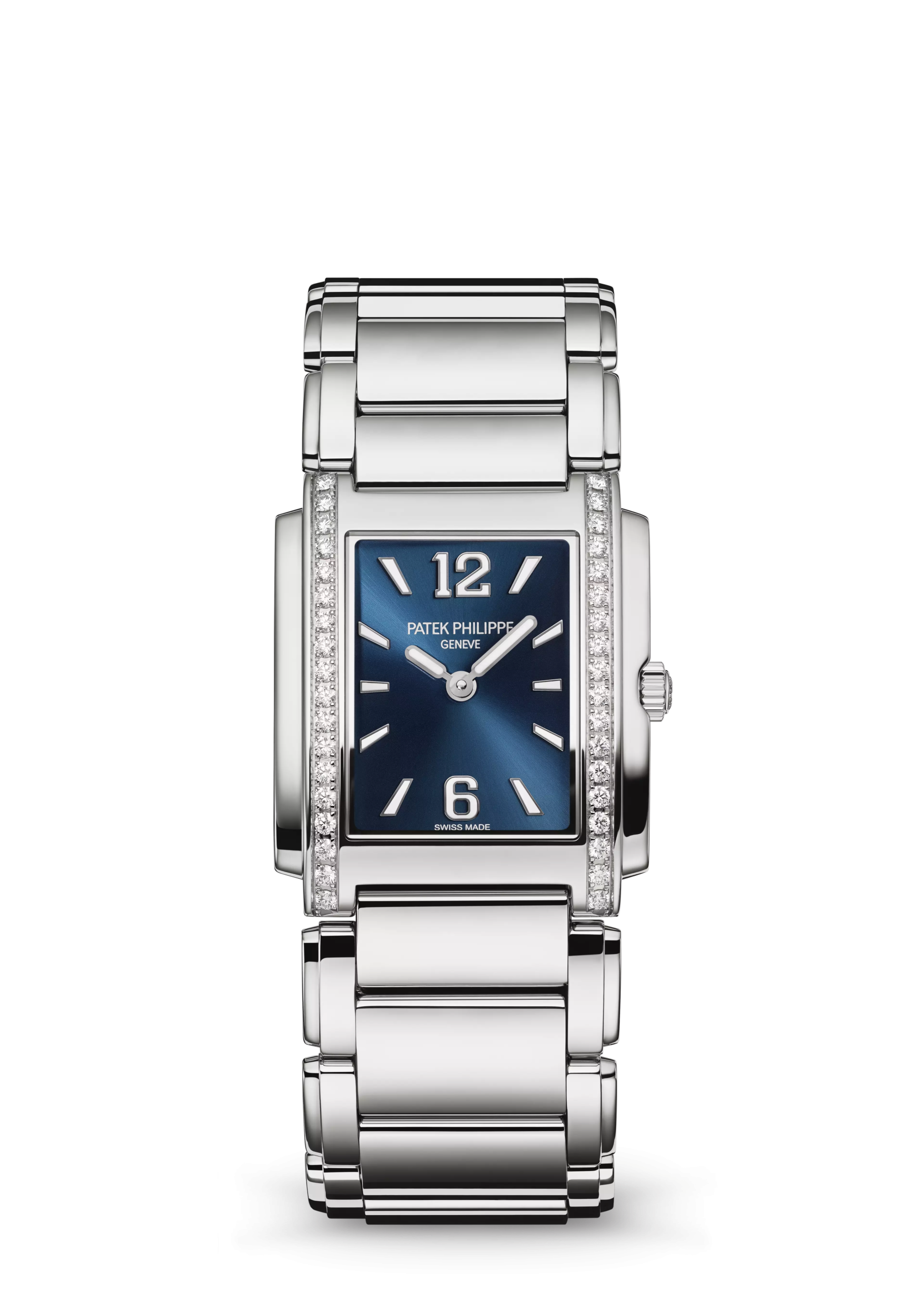Launched in 1999, the Twenty~4 quartz cuff-style watch has become the benchmark for feminine elegance. The original shape of the Art Deco-inspired rectangular two-tier case is highlighted by two rows of diamonds. The supple, comfortable bracelet – a veritable jewel enhanced by hand-polished finishes – is fitted with a fold-over clasp.