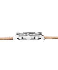 The oversized “arrow” second hand and bold hour markers of the Type H-75 Chronograph ensure clear visibility in all conditions, making it an essential piece for demanding field operations. Over-sized chronograph pushers and a notched bezel were specifically designed for easy use, even with aviation or field gloves, providing seamless functionality during critical moments. The luminous display ensures exceptional readability from day to night.