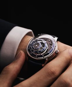 Inviting you to explore uncharted territories while staying true to Trilobe’s distinctive artistic heritage, Une Folle Journée Blue is a creation that resonates with Trilobe’s initial releases, offering a fresh perspective on their core values. This collection reaches unprecedented levels of excellence by seamlessly blending the time-honored craftsmanship of watchmaking with a modern design.