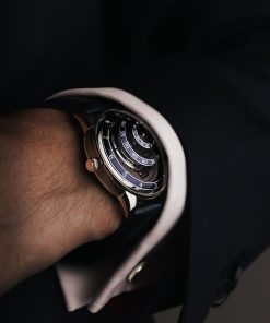 The three revolving rings move forward with a sense of purpose, carrying the essence of time with them: the largest ring indicates hours, the middle one tracks minutes, and the smallest one keeps precise seconds. Trilobe’s innovation comes to life as the Une Folle Journée Blue elevates itself to establish a technical connection between its off-center rings and its distinctive X-Centric³ (cubic) signature movement. For the first time, the dial is open, allowing you to appreciate the Swiss-made movement’s watchmaking artistry while never losing sight of the uniqueness of the rotating rings. This is the true brilliance of Trilobe’s innovation: the rings are an integral part of the movement, making it possible to liberate time.