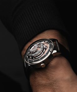 The three revolving rings move forward with a sense of purpose, carrying the essence of time with them: the largest ring indicates hours, the middle one tracks minutes, and the smallest one keeps precise seconds. Trilobe’s innovation comes to life as the Une Folle Journée Dune Titanium elevates itself to establish a technical connection between its off-center rings and its distinctive X-Centric³ (cubic) signature movement. For the first time, the dial is open, allowing you to appreciate the Swiss-made movement’s watchmaking artistry while never losing sight of the uniqueness of the rotating rings. This is the true brilliance of Trilobe’s innovation: the rings are an integral part of the movement, making it possible to liberate time.