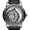 The rotating hours, minutes, and seconds rings rise 10.2 mm above the movement, supported by a masterfully engineered titanium structure. Each ring is a feat of precision, constructed from titanium-aluminum-vanadium—an ultra-light yet challenging material to shape and polish. Nine columns uphold this floating display, topped by a flawless Japanese-crafted sapphire dome.