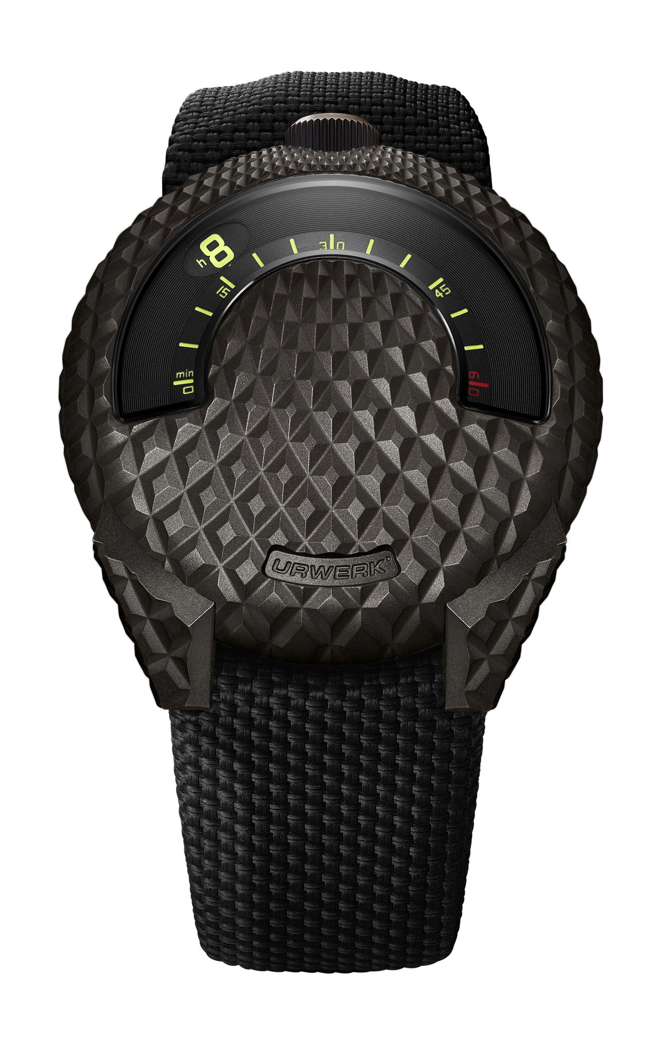 Design meets mechanics in a perfect storm of form and function. The engraved grooves course from crown to case back, mirroring the rugged asymmetry of its Millennium Falcon-inspired shape. At 41mm wide and 11.86mm thick, its ergonomic curve ensures a snug fit, while an angled spoiler at 12 o’clock tilts the display towards the wearer’s gaze. A modern nod to its 1997 ancestor, the satellite time display mechanism returns, powered by the upgraded UR-1.01V caliber, featuring a 180-degree display and a robust, snailed carrousel.