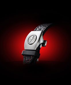 The custom dial features hand-painted Franck Muller numerals in red, inspired by the band’s first logo lightning bolt from 1974, and includes a vinyl-like pattern reminiscent of their debut album, “High Voltage.” Six silver guitar strings on the dial pay tribute to Angus Young’s legendary Gibson guitar. The AC/DC logo, first seen in 1977, and a “50 YEARS” tagline are central elements. The buckle features the AC/DC lightning design from the “Let There Be Rock” album cover.