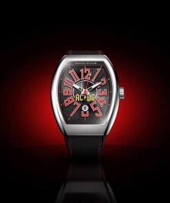 The Franck Muller Vanguard AC/DC 50th Anniversary limited edition watch celebrates the iconic rock band AC/DC’s 50-year legacy. Limited to 50 pieces in polished stainless steel and 50 in brushed titanium with black PVD treatment, the watches feature a 43 mm case, automatic movement, and a date window at 6 o’clock.