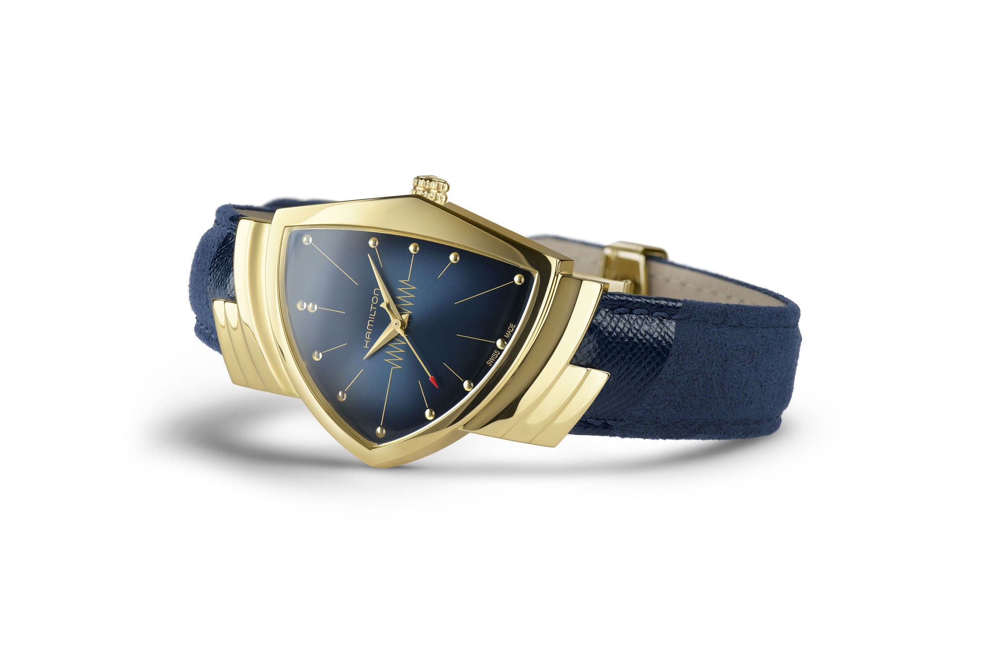 In a blend of tradition and innovation, the watches are equipped with nickeled hands and a reliable 3-jewel quartz movement, encased in either stainless steel or PVD-coated yellow gold. The collection also includes two Ventura Chronograph Quartz models, with a 23-jewel movement and subdials for added functionality, exclusively available with a stainless-steel case.