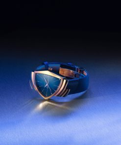 The Ventura Collection is an elegant tribute to Elvis Presley and his timeless hit “Blue Suede Shoes,” reimagining the Ventura, the world’s first electric watch that debuted in 1957. This Mid-Century Modern masterpiece, beloved by Presley and featured in his film “Blue Hawaii,” is revived in six new models, capturing the essence of the iconic song. Each model showcases a gradient blue dial, symbolizing the vibrancy of Presley’s impact on music and style.