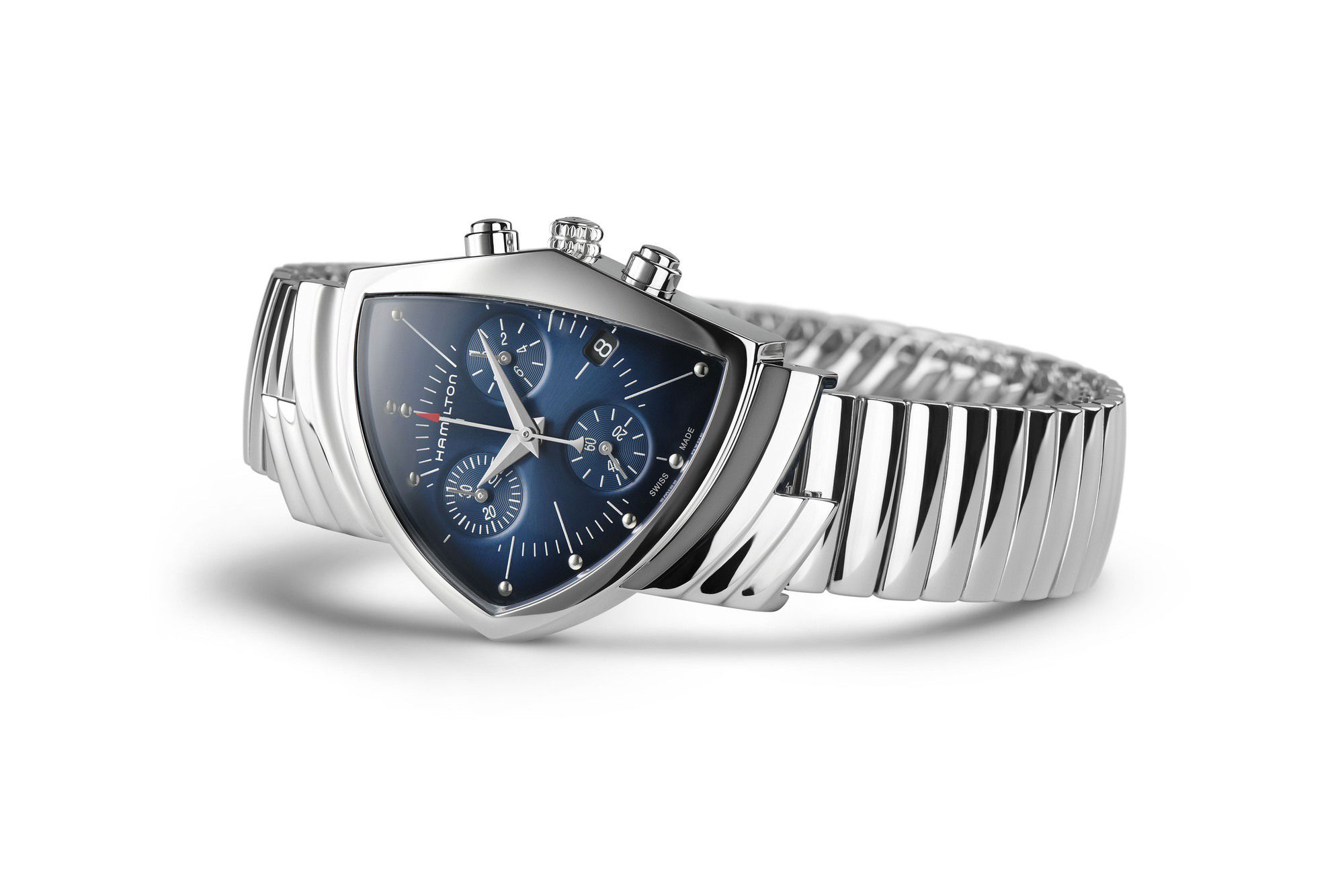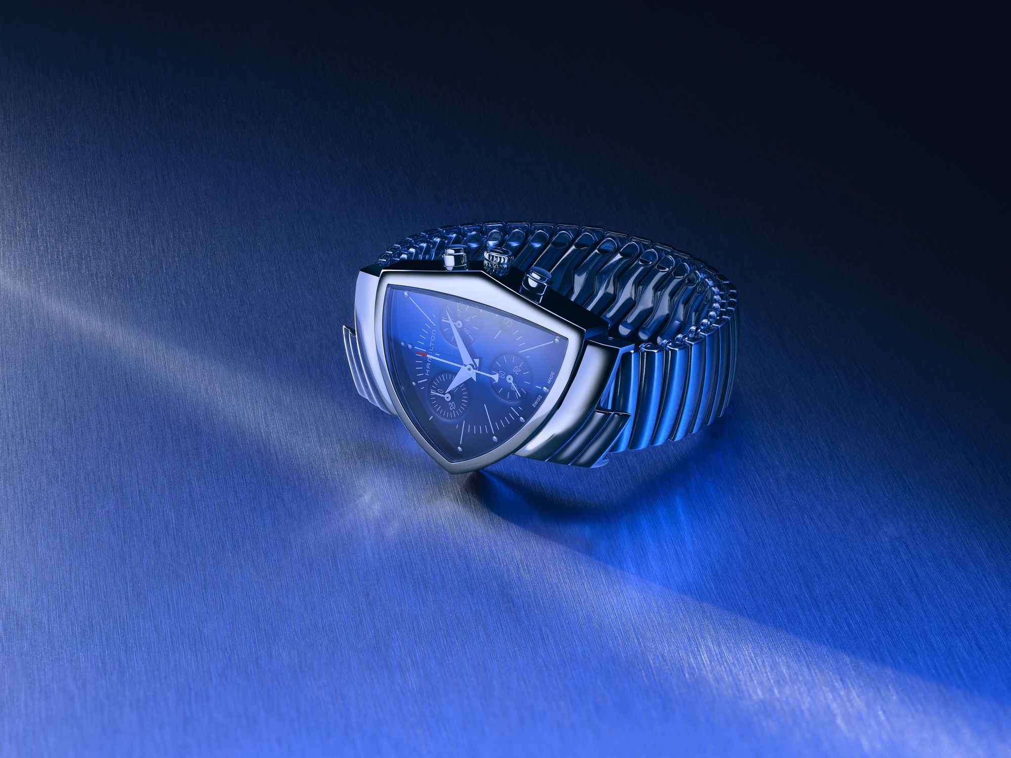 The Ventura Collection is an elegant tribute to Elvis Presley and his timeless hit “Blue Suede Shoes,” reimagining the Ventura, the world’s first electric watch that debuted in 1957. This Mid-Century Modern masterpiece, beloved by Presley and featured in his film “Blue Hawaii,” is revived in six new models, capturing the essence of the iconic song. Each model showcases a gradient blue dial, symbolizing the vibrancy of Presley’s impact on music and style.