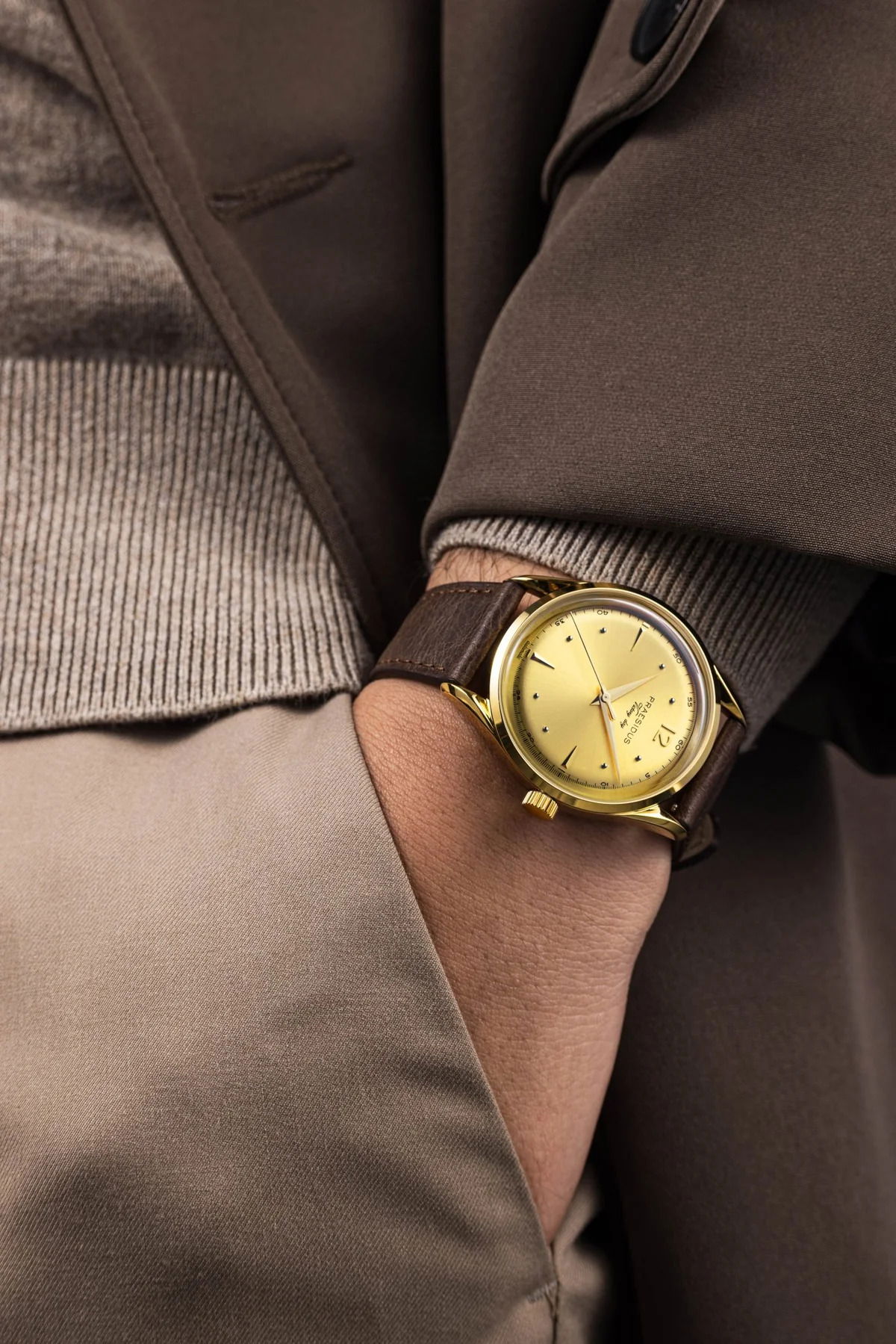 The Victory arrives in four distinct guises, White Dove, Champagne, Silverline, and Classic, available in either stainless steel or yellow gold-plated steel. At 38 mm, the case strikes a balanced note between period authenticity and modern wearability, topped with sapphire crystal for everyday resilience. Inside beats the Miyota 9039, a reliable automatic movement chosen for its slim profile, while leather straps reinforce its understated elegance. Water resistance to 100 meters ensures the Victory is more than a delicate ornament.