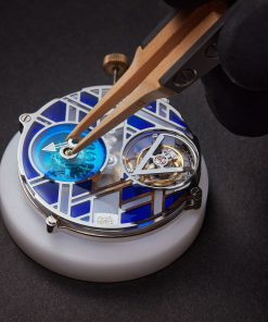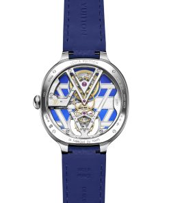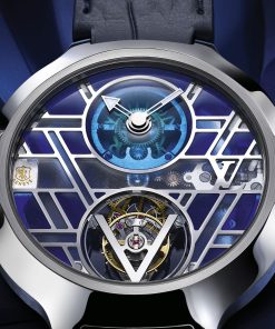 The avant-garde case enhances the dial’s beauty, casting infinite nuances onto the watch mechanism. Moreover, the Voyager boasts a hand-finished skeleton movement and proudly bears the prestigious Poinçon de Genève seal, underscoring its exceptional quality and mastery of contemporary High Watchmaking. The Voyager Flying Tourbillon “Poinçon de Genève“ Plique-à-jour really stands as a testament to Louis Vuitton’s visionary spirit and relentless pursuit of excellence since its founding in 1854.