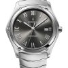 Women’s EBEL Wave watch, 30 mm stainless steel case with 18K yellow gold bezel and crown, pastel brown galvanic dial with 8 diamond markers (0.052 ct.), applied EBEL symbol and indexes, brushed and polished two-toned stainless steel signature wave-link bracelet with deployment clasp.