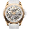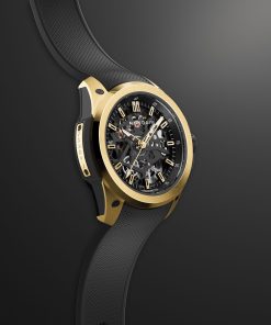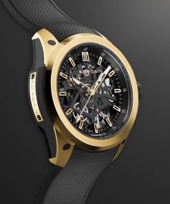 The Yellow Gold edition brings a mix of brushed and polished 3N gold, an open-worked black dial and a black Milanese-pattern rubber strap. Limited to just 50 pieces, it’s clearly aimed at collectors who favor exclusivity. The Red Gold version shifts the palette, pairing warm 5N gold with a brown NORTEQ® back plate and a silver open-worked dial, finished with a clean white strap. Both watches include an 18K gold side plate ready for personalised engraving, a thoughtful detail for anyone gifting during the holidays.