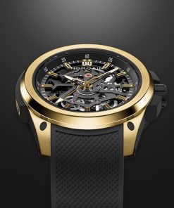 NORQAIN is closing out the year with two festive additions to its Wild ONE Skeleton 39mm line, each in solid 18K gold. The independent Swiss brand debuts 18K yellow gold for the first time, joined by an equally handsome 18K red-gold version. Both models keep the Wild ONE formula intact: a PX Impact® gold top plate, a lightweight NORTEQ® carbon-fibre back plate and the familiar rubber shock absorber that gives the watch its rugged, sporty character.