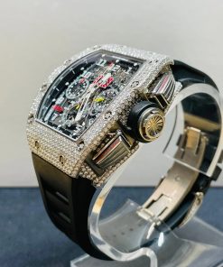 The crown resembles a smooth tyre encircling a spoked wheel rim. Lastly, Richard Mille is all about meticulous technical exploration of materials. The RM 011 was available in titanium, gold and all of the brand’s proprietary materials: ceramic, carbon TPT, silicon nitride and Red Quartz TPT , which have lent their properties to a long line of limited-edition timepieces created with Philippe Starck, Le Mans Classic, Lotus F1 Team… and with the driver that inspired the RM 011, Felipe Massa.